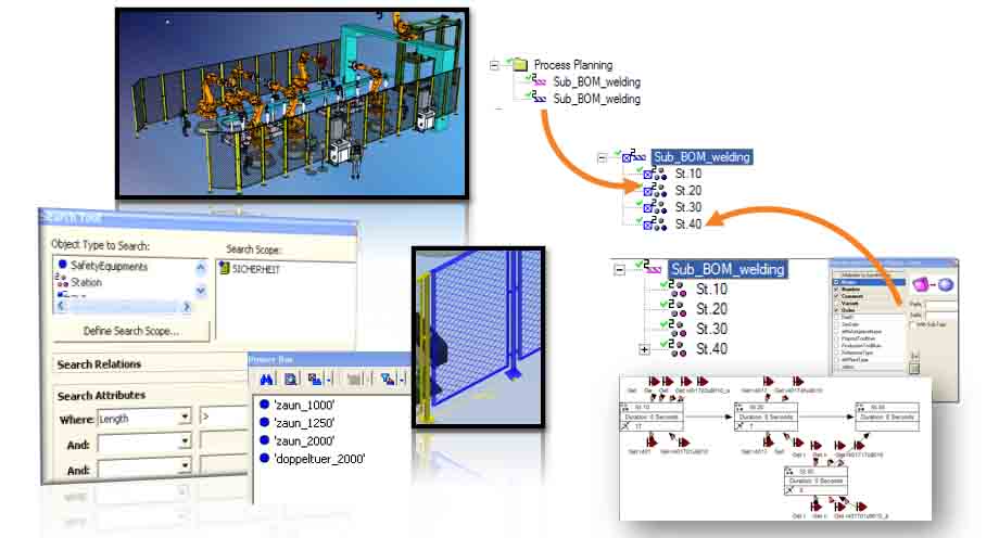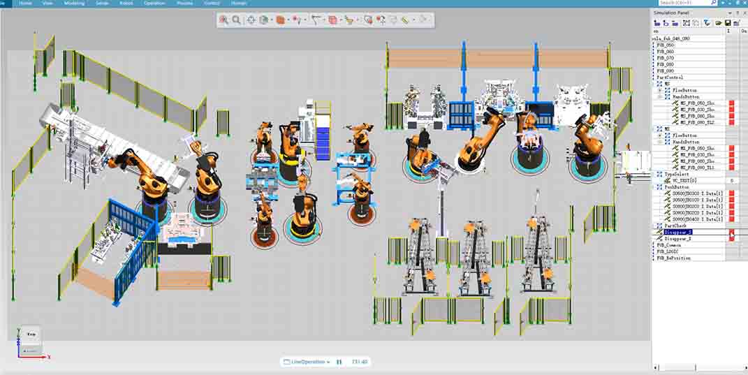優(yōu)化機(jī)器人的路徑,規(guī)劃無干涉的機(jī)器人運(yùn)動(dòng),生成已充分驗(yàn)證的機(jī)器人離線程序;驗(yàn)證多臺(tái)機(jī)器人的同時(shí)協(xié)同工作,精確機(jī)器人實(shí)時(shí)運(yùn)動(dòng)和周期仿真。