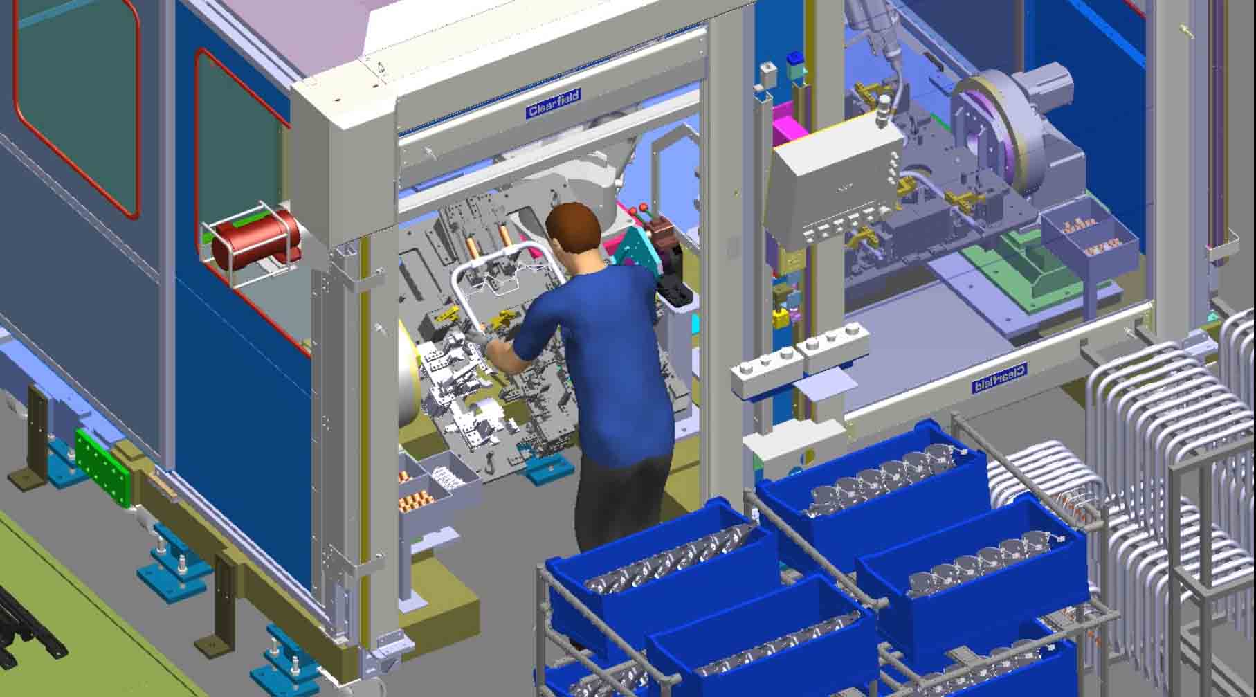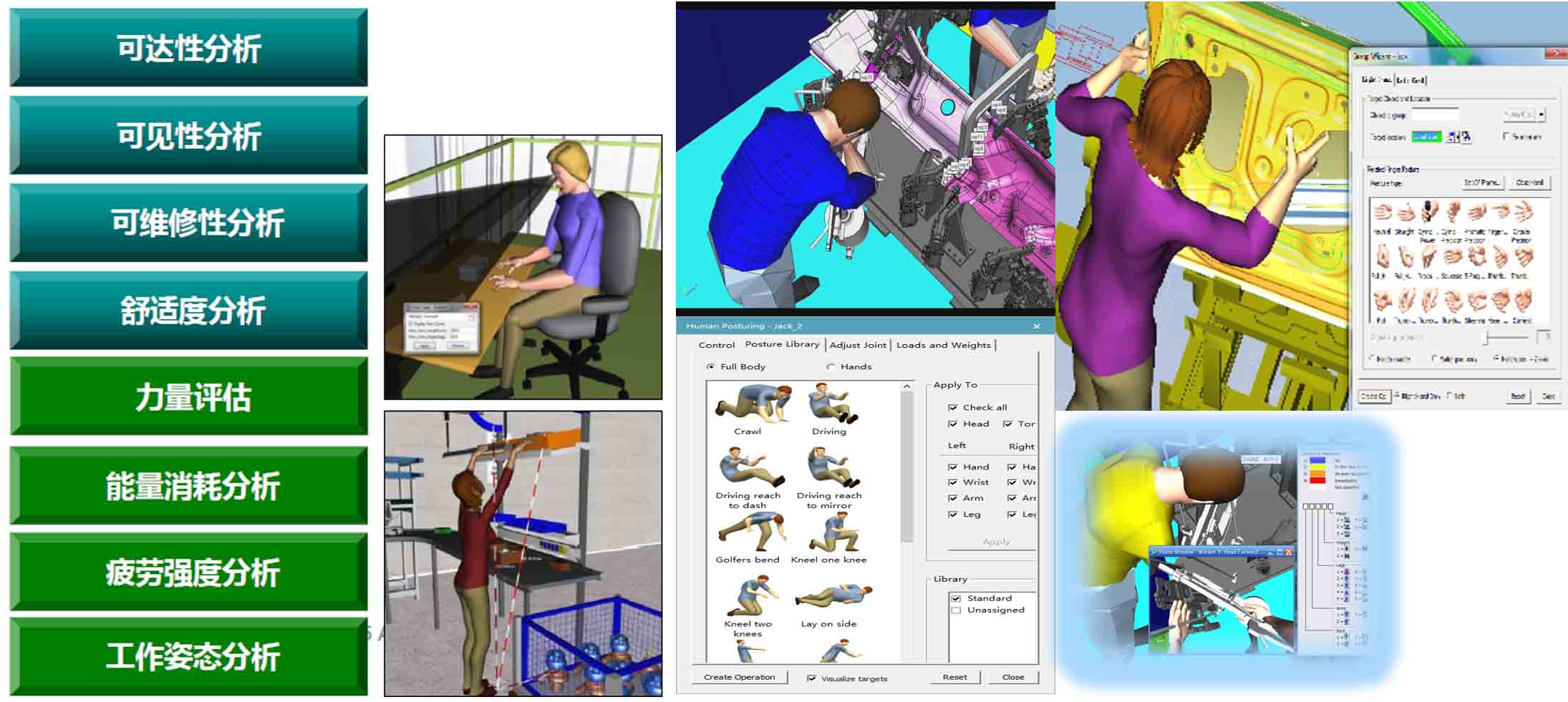 某焊接生產(chǎn)線人工裝配仿真,驗(yàn)證了該工位的生產(chǎn)節(jié)拍,檢測了工作空間是否符合工人工作需要,對(duì)設(shè)備布局進(jìn)行了優(yōu)化,避免了工人在裝配過程中出現(xiàn)的不規(guī)范操作,給出了工人最佳的裝配姿態(tài),縮短了仿真節(jié)拍,減少了工人可能在工作中因姿勢不規(guī)范造成的身體傷害。
