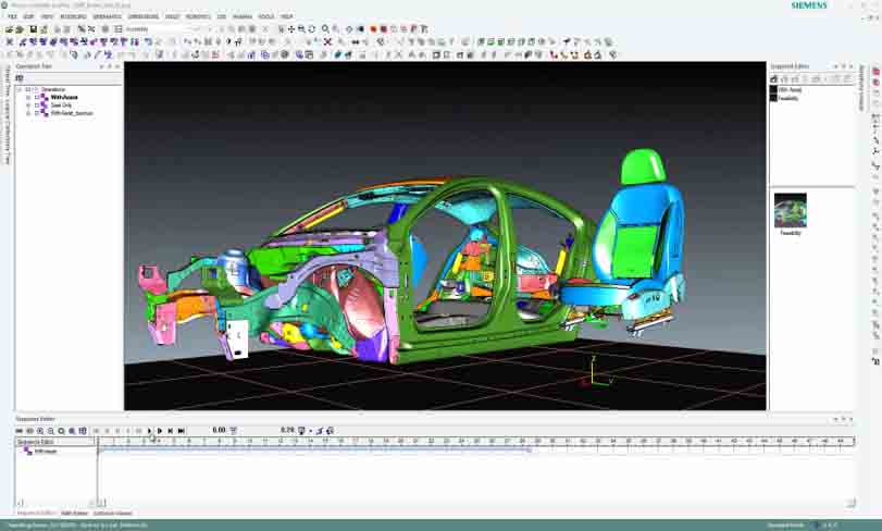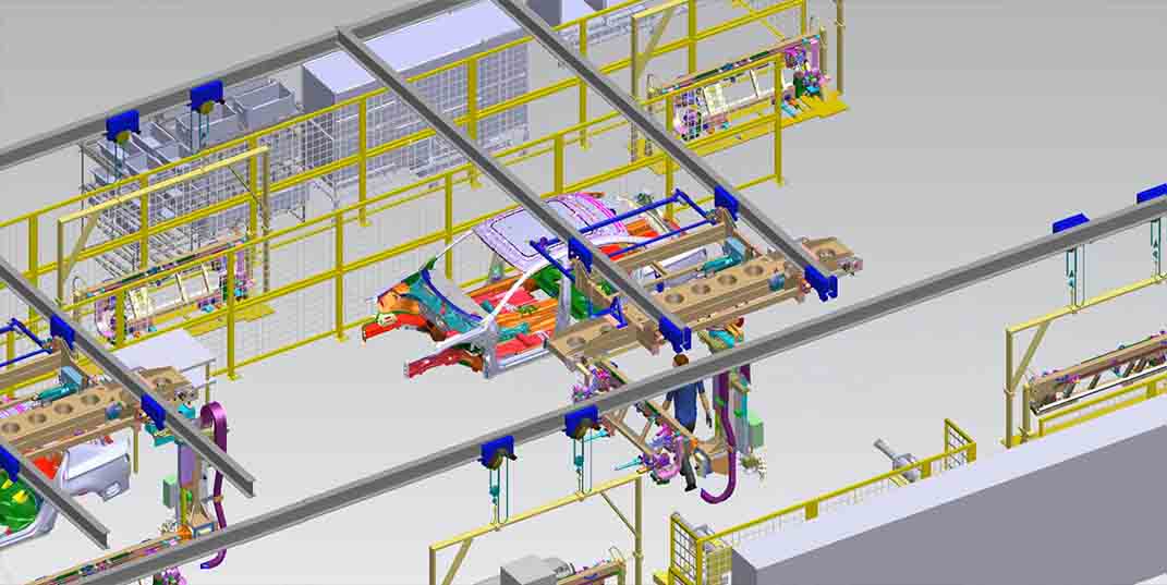 某主機(jī)廠座椅安裝和儀表板裝配仿真,通過對(duì)座椅、儀表板安裝進(jìn)行仿真,驗(yàn)證工作人員操作機(jī)械手是否便利,驗(yàn)證機(jī)械手運(yùn)動(dòng)軌跡范圍內(nèi)設(shè)備布局是否合理,驗(yàn)證車身的空間是否滿足機(jī)械手工作需要,機(jī)械手是否于車身存在干涉。